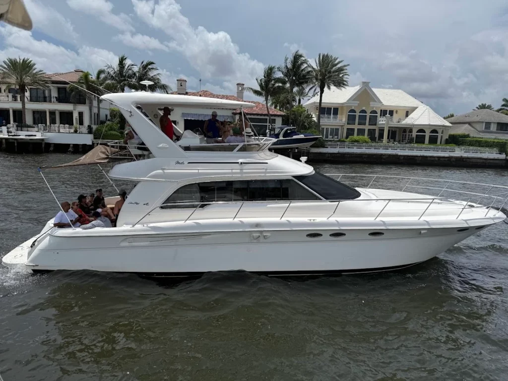 Rent the 51’ Searay Sedan Bridge for an exceptional day on the water. Perfect for celebrations, leisure, or cruising with friends and family. Includes professional crew, amenities, and a memorable experience tailored to your duration.