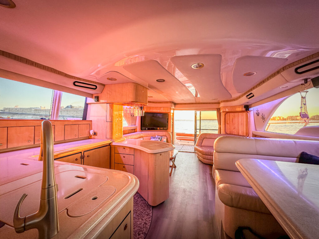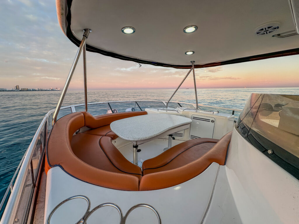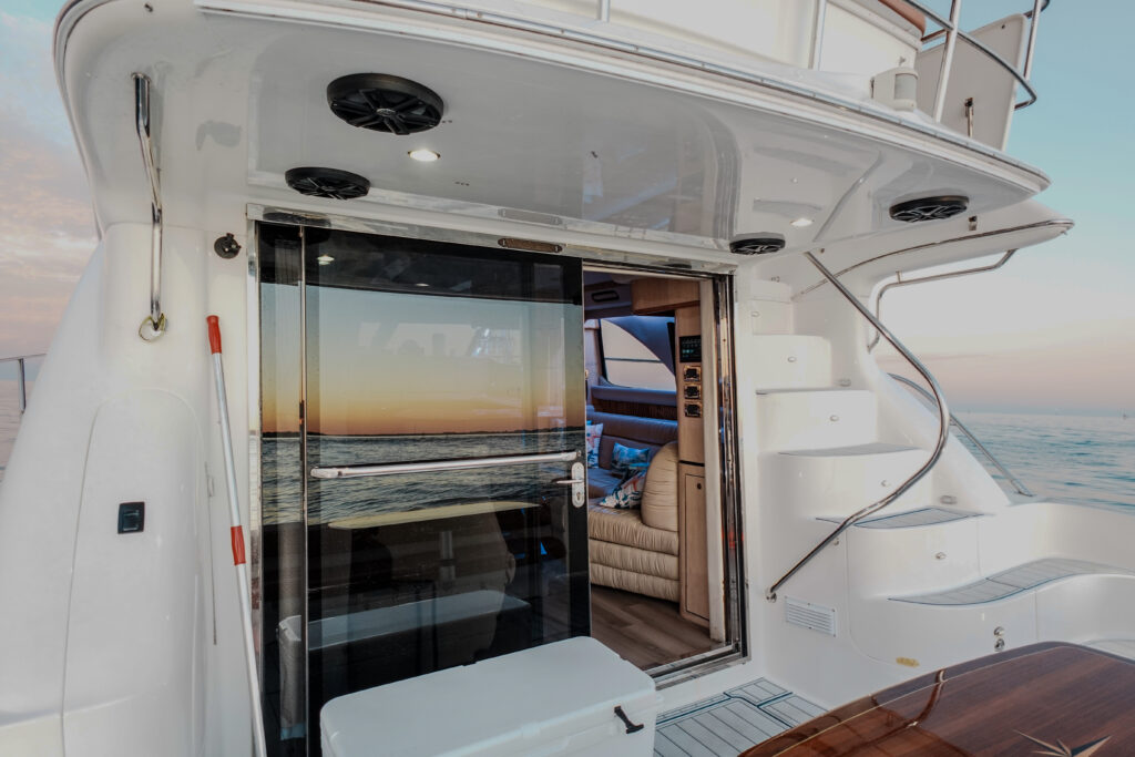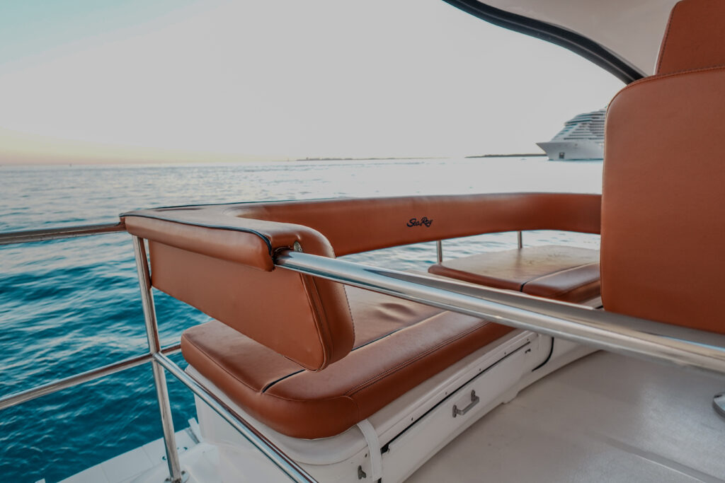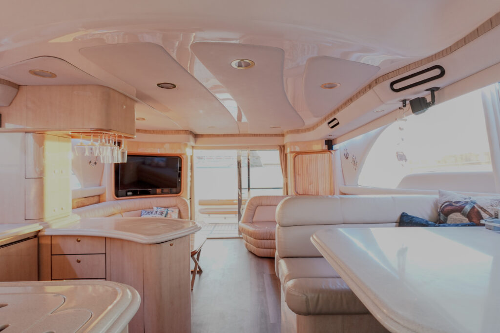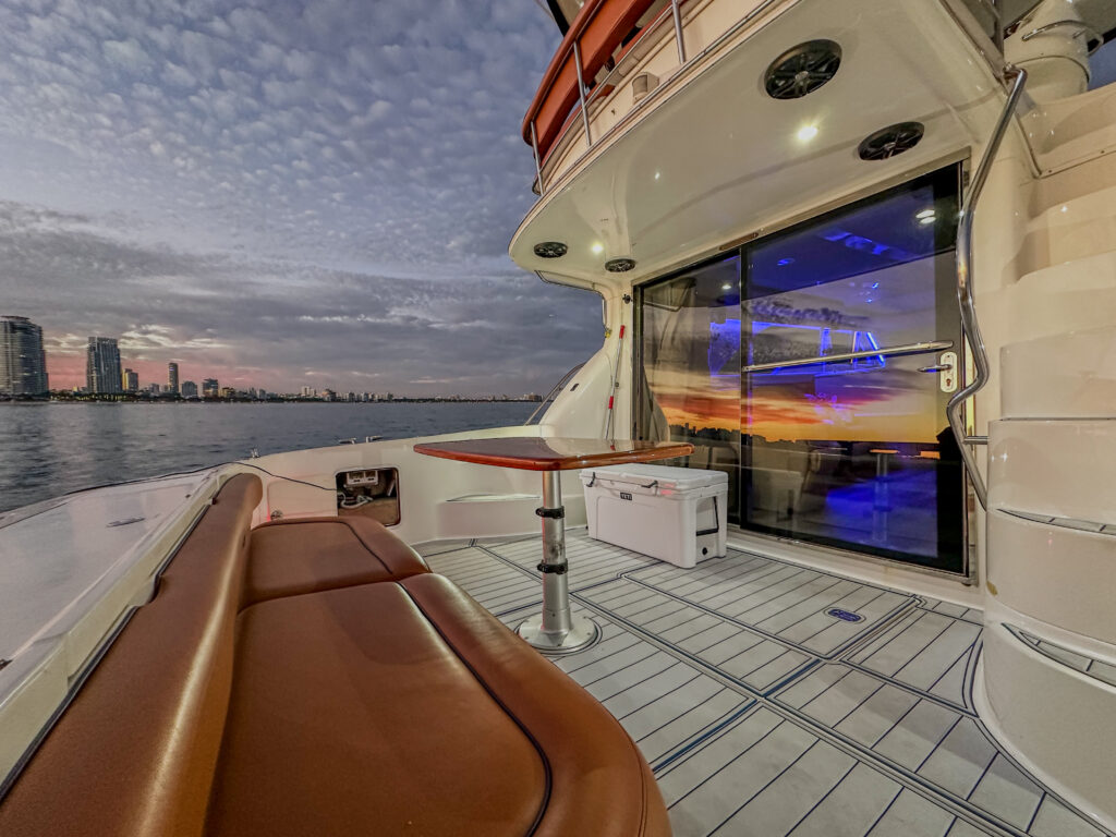Enjoy refined cruising and social living aboard this 65’ Sea Ray Flybridge yacht. A luxury motor yacht designed for unforgettable outings, comfort, and style on the water.