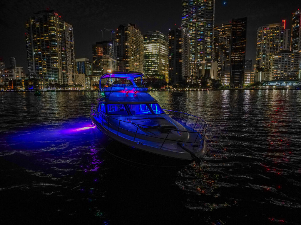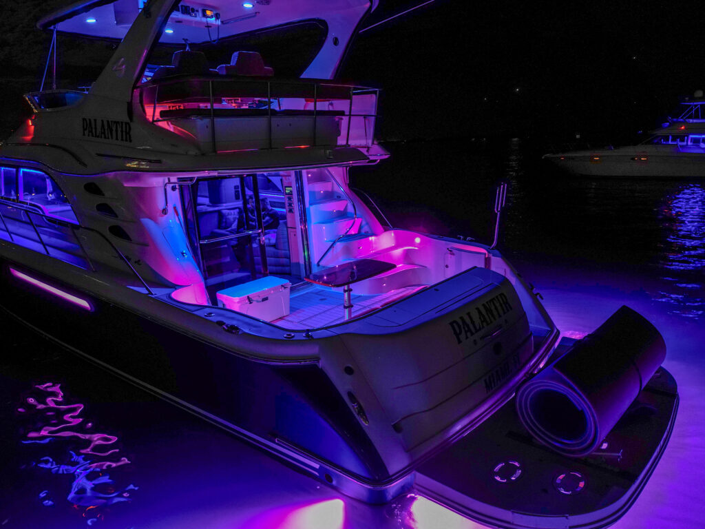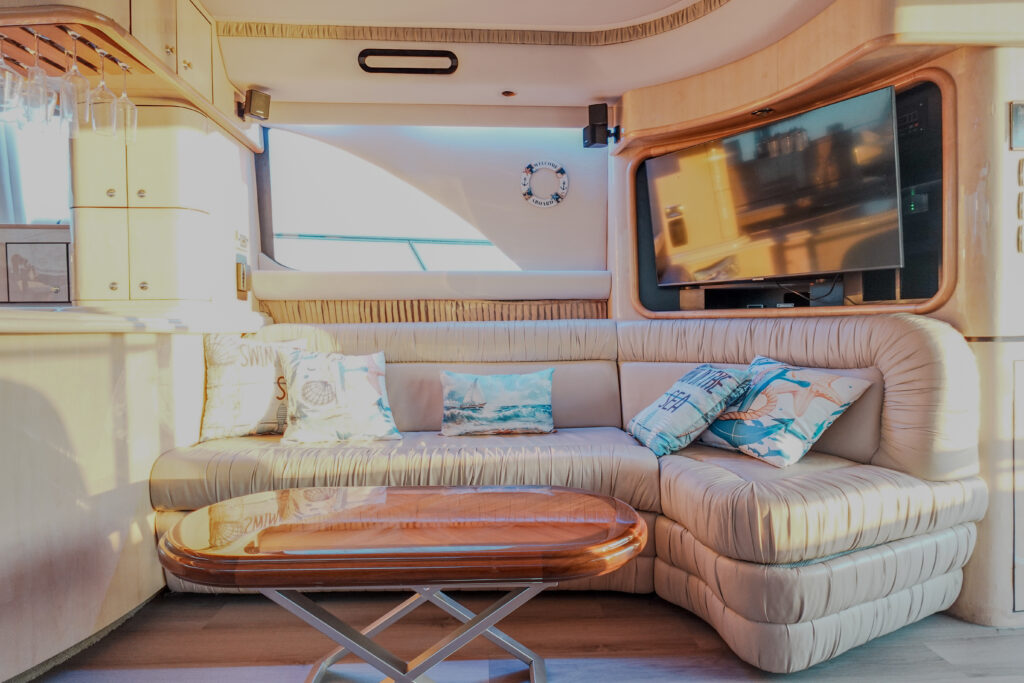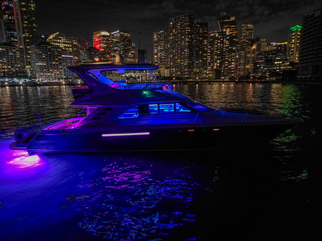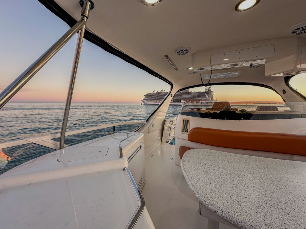 Enjoy refined cruising and social living aboard this 65’ Sea Ray Flybridge yacht. A luxury motor yacht designed for unforgettable outings, comfort, and style on the water.