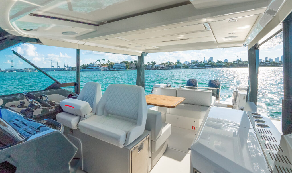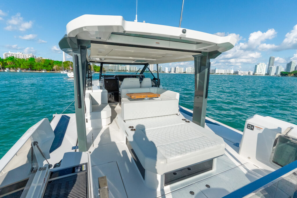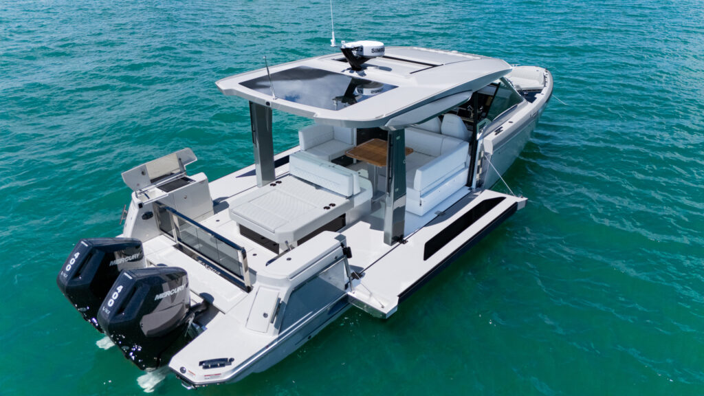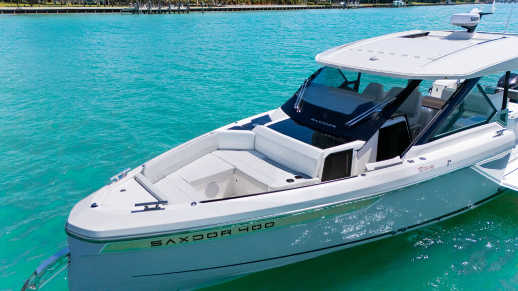 Step aboard the thrilling Saxdor 400 GTO, a cutting-edge 42-foot speed boat that blends sleek modern design with exceptional performance and versatility. With spacious lounges, fold-out terraces, powerful engines, and stylish touches below deck, it’s perfect for high-speed cruising, entertaining friends, or enjoying a luxurious day on the water.